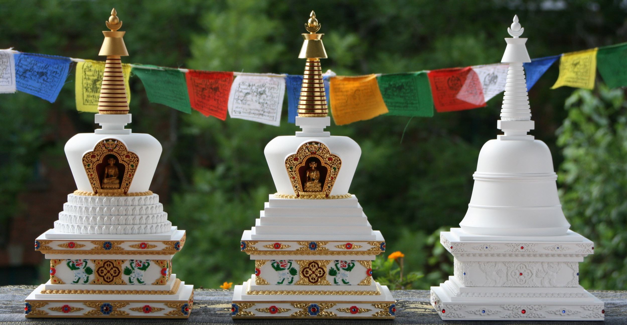 The Buddhist stupa represents the pure perfection of the mind, a symbol of peace and tranquility. The stupa is filled with blessed items. Choose your stupa.