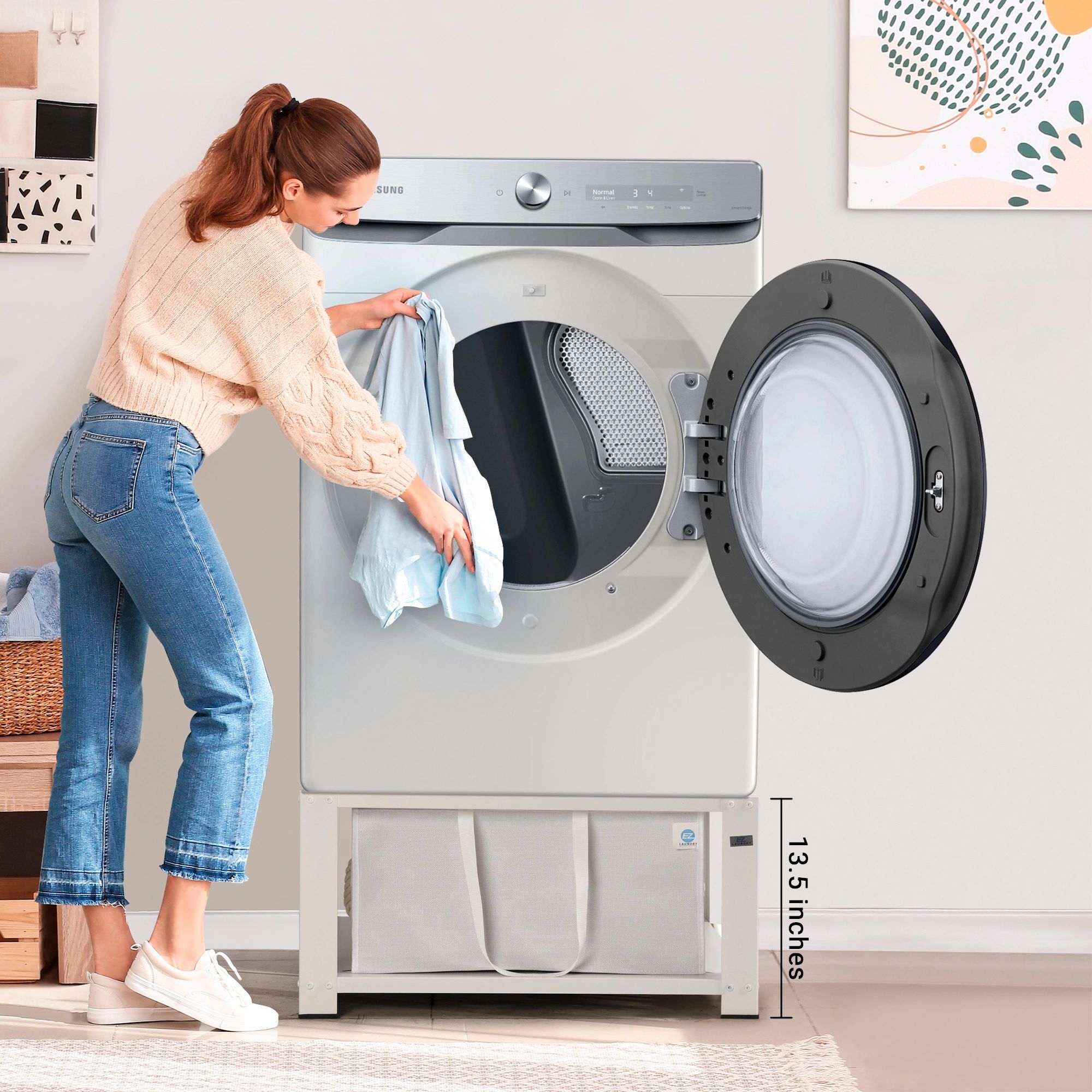 Universal laundry pedestals that fits most US laundry machines that's affordable and convenient. No need to DIY! Hampers that fits perfectly in the pedestal.
