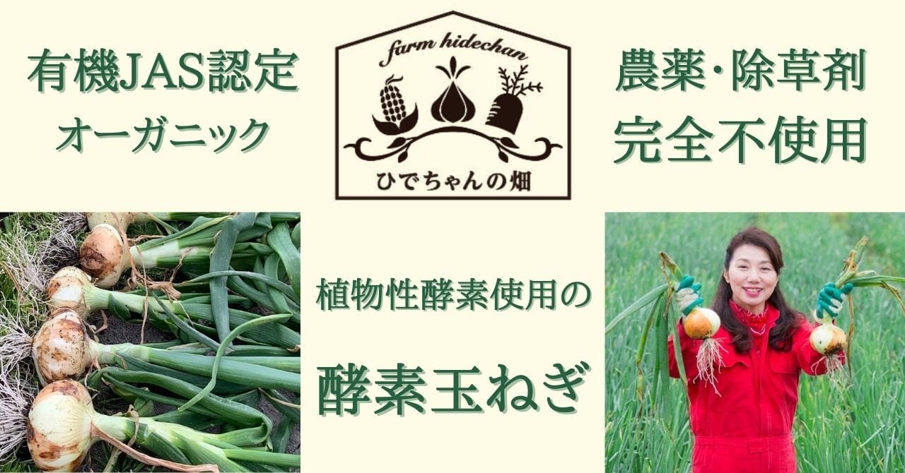 \安心・安全でおいしい/佐賀県白石産の 酵素玉ねぎ 玉ねぎ ひでちゃん ーーーーーーーーーーーーーーー★農薬・除草剤 完全不使用★植物性酵素・有機肥料使用★佐賀県特別栽培農産物A認証ーーーーーーーーーーーーーーーご覧いただき、ありがとうございます。玉ねぎの産地で有名な佐賀県白石町で酵素玉ねぎを育てています。家族や大切な人たちに安心して美味しい野菜を食べて欲しいという想いから、無農薬・除草剤不使用の玉ねぎを作りはじめました。ベト病の被害により、広い畑での玉ねぎの無農薬栽培は難しいとされてきましたが、植物性酵素や有機肥料を使用し土づくりからこだわり、雑草などは一つひとつ手作業で抜くなど、手間暇かけることで、安心で美味しい玉ねぎができました。2020年3月には、佐賀県産の玉ねぎの中で、唯一の特別栽培農産物Aランクの認証を受けました。種から無農薬のものを使用し、一切の薬剤を使用しておりません。安心・安全はもちろん、シャキシャキでみずみずしく、甘く美味しい玉ねぎにこだわって栽培しております。こだわりと想いのつまった玉ねぎを、たくさんの方に味わっていただきたいと思っております。是非ご賞味ください。ひでちゃんの畑代表 桐山 秀子
