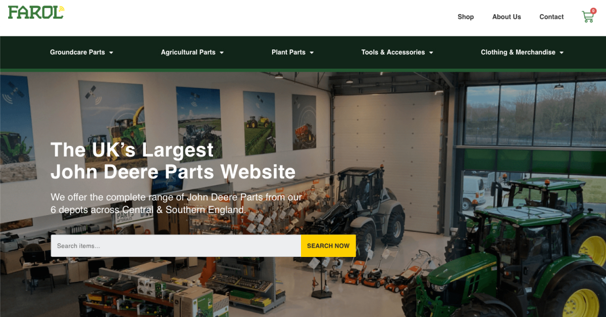 The UK’s Largest John Deere Parts shop We offer the complete range of John Deere Parts from our 7 depots across Central & Southern England. Products search