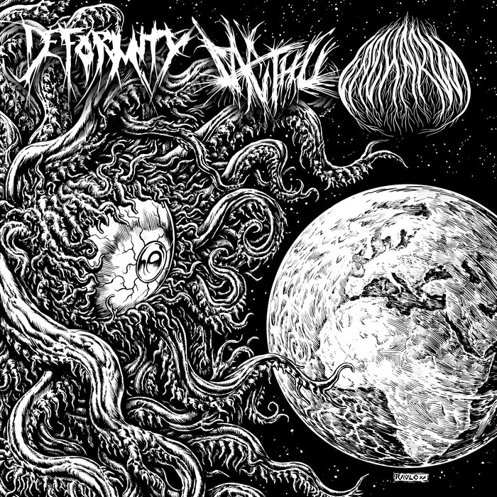 FUZZ T-Shirts RecordsDeformity/Sacthu/Lazharus 3 way split. lp, released 29 November 20211. DEFORMITY Bizarre soundtrack for a cosmic horror movie.2. SACTHU Lobos 13. SACTHU Core Dan4. SACTHU Lobos 25. SACTHU Ghroth el precursor (feturing LAZHARUS)6. LAZHARUS El horror de DumwitchAvalible at fuzztshirts.comlimited and numbered edition of 312 copies.Includes A3 size postersArtwork cover, poster and label by Raúlo Cáceresraulocaceres.es