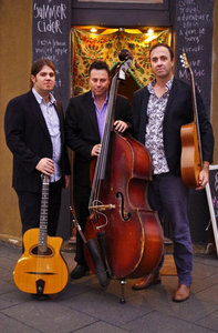 Gadjo Guitars.Sydney, Australia.Gadjo Guitars is a jazz band featuring Nigel Date on guitar, Cameron Jones on guitar and Stan Valacos on double bass. The band loves to swing in the style of Django Reinhardt. Nigel and Cameron use 'Selmer style' steel string acoustic guitars. They also have a love of all things guitar, You can hear a virtual history of the guitar in the music they create. Plus they write tunes as well.