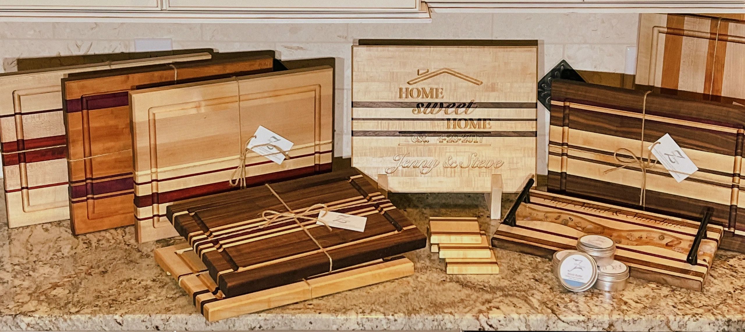 Steve and Jenny own and operate Grain Artistry together, creating unique and high-quality items in their home studio. Specializing in items constructed from wood, salt, and sand.
