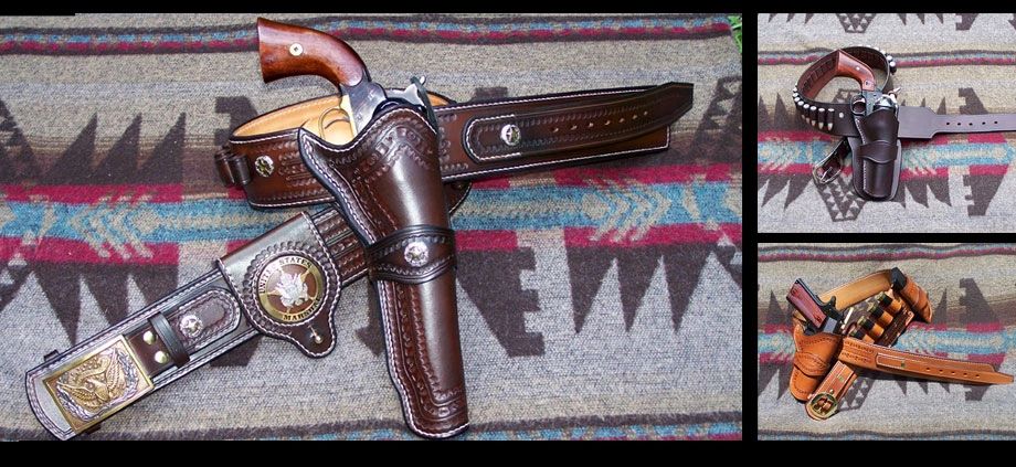 Custom makers of western holsters and rigs for Colt Single action revolvers and Remington and Colt black powder revolvers as well as rifle and shotgun scabbards