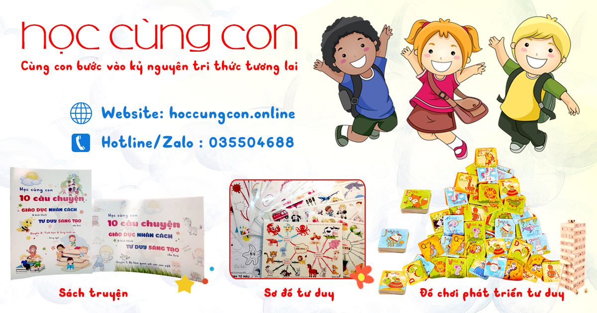Cùng con bước vào kỷ nguyên tri thức, Học cùng con chuyên cung cấp các sản phẩm sách truyện, mindmap (sơ đồ tư duy), đồ chơi giáo dục sớm cho trẻ mầm non & tiểu học. Truy cập hoccungcon.online