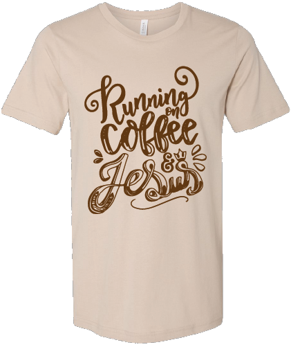 Running on Coffee & Jesus T-shirt offer from The Holy Clothing Company and 1st Place Printing.