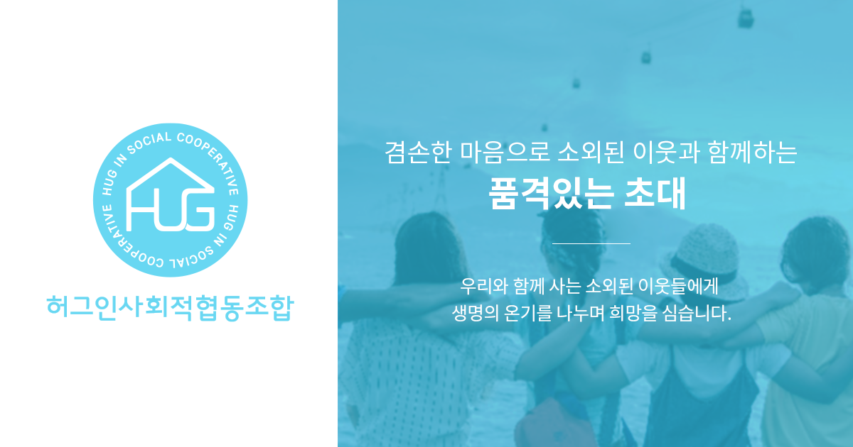 허그인사회적협동조합은 우리와 함께 사는 소외된 이웃들에게 생명의 온기를 나누며 희망을 심습니다.