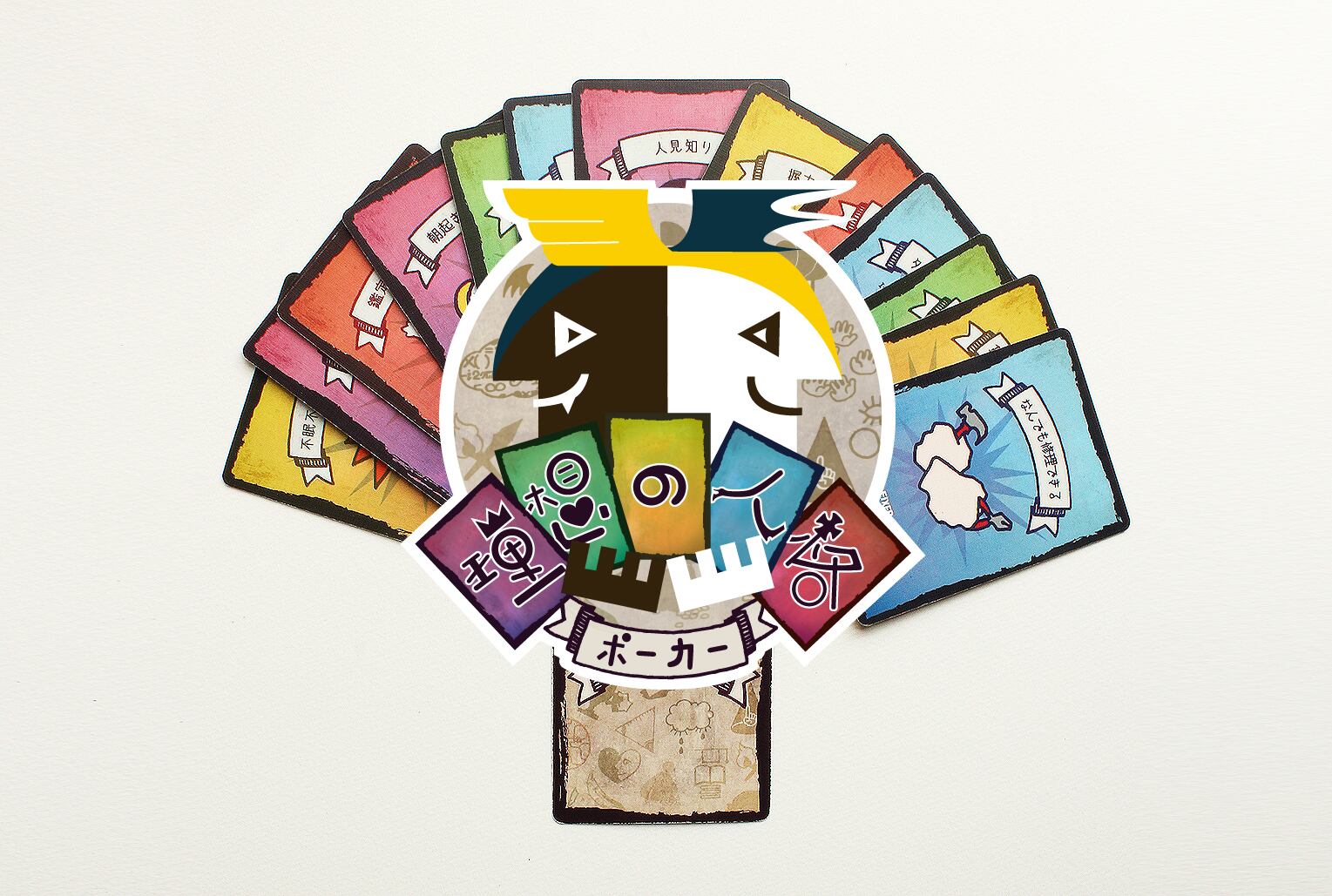 人間の長所と短所を組み合わせて理想の人格をつくるコミュニケーションゲームです。プレイヤーは「ヒーロー」「マフィアのボス」「彼氏」といったテーマを与えられ、山札からカードを引いたり他のプレイヤーからカードをもらったりしてカードを組み合わせ、これこそ理想と思われる手札をつくり、いかに自分の理想の人格が素晴らしいかを語ります。日頃思っていること、そのまま言ったら角が立つ事、綺麗ごとだと笑われてしまいそうな理想も、このゲームのせいにしたら言いたい放題。普段はおとなしいあの人も、怖い顔した先輩も、ちょっと気になるあの子も、日常の会話だけでは引き出しきれない相手の一面に出会えるゲームです。
