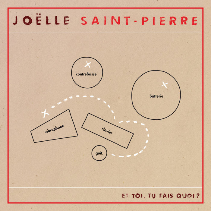 Joëlle Saint-PierreEt toi, tu fais quoi?, released 11 September 20151. Choc électrique2. Cent pas3. Souris4. Jour doré5. Carrousel6. Rose7. Jamais seule8. La réalité9. On a pleuré sur la lune10. Murs11. AlinéaRéalisé par Mathieu Charbonneau (Avec pas d'casque, Timber Timbre), Joëlle Saint-Pierre nous présente un album intimiste, simple, vivant, doux et féminin. Le vibraphone y est omniprésent, tout comme le reverb et les craquements de l'église où il a été principalement enregistré. Le tout a été créé et concrétisé en collaboration avec une panoplie de gens doués, dont Stéphane Robitaille, Catherine Lalonde, Pietro Amato, Vincent Carré, Marc-André Landry, Louis Dugal et Daniel Gélinas.Biographie longue :Originaire de Chicoutimi, Joëlle fait de la musique depuis pratiquement toujours et chante depuis quelques années des chansons qu’elle crée seule ou avec des amis. Oui, elle s'accompagne au vibraphone, oui avec quatre baguettes. Oui, c'est lourd. Non, elle n'aurait pas dû apprendre à jouer de la flûte à la place, même si elle respecte toutes les races et grosseurs d'instruments et que la musique est partout. Et oui, Joëlle rédige elle-même sa biographie en utilisant la troisième personne.Après moult aventures, spectacles et voyages, un premier album paraît enfin le 11 septembre 2015. Il est le fruit d'un travail-pas-vrai-travail de plusieurs personnes gentilles, généreuses et douées : Stéphane Robitaille et Catherine Lalonde aux améliorations de paroles, Louis Dugal à l'ancienne complicité musicale, Daniel Gélinas au génie-spontané, Pietro Amato à la magie, Vincent Carré, Marc-André Landry, Stef Scheider, Alex Blais, Cédric Dind-Lavoie aux talents bruts, Francis Beaulieu au miracle sonore et Harris Newman à la geekness.Si vous vous dites que vous avez peut-être déjà vu Joëlle quelque part, ce n'est probablement pas vrai. Mais ça se pourrait que vous l’ayiez vue au Québec aux Francouvertes, au Festival en chanson de Petite-Vallée, à la ChantEauFête de Charlevoix, au Festival de la chanson de Granby, à Ma Première Place des Arts, à Vue sur la relève, à Chante en Français, à Osheaga, aux Francofolies de Montréal, à Coup de coeur francophone ou en spectacle dans une petite salle alors que vous ne saviez pas qui c’était avant. Si vous habitez les Europes et parlez français. il se peut également que vous l'ayiez vue à l'Estival, à Voix de fête, à Connexions Urbaines, au Chaînon Manquant ou dans une salle où vous ne saviez pas qui c’était avant, mais qu'étonnamment, comme un nombre surprenant d'Européens, vous avez décidé de laisser la télé se garder seule pour aller voir un spectacle avec des humains que vous ne connaissiez pas. (Joëlle fait dire qu'elle s'excuse d'amalgamer les Européens francophones comme ça dans un seul nom.)En tant que musicienne, elle a collaboré/accompagné/partagé/joué sur différents projets dont ceux de Mathieu Lippé, Stéphane Robitaille, Marcie, Sarah Toussaint-Léveillé, Geneviève Morissette, Anthony Roussel, Guillaume d’Aou, Anique Granger, Chloé Lacasse et Isabelle Boulay, pour n’en nommer que quelques-uns. Tout ça, ça donne quoi ? Ça donne des chansons en français, un peu pop et ben douces. Ben douces. Un peu comme des bands avec des chanteuses de bossa ou de jazz doux, sans le jazz ni la bossa.