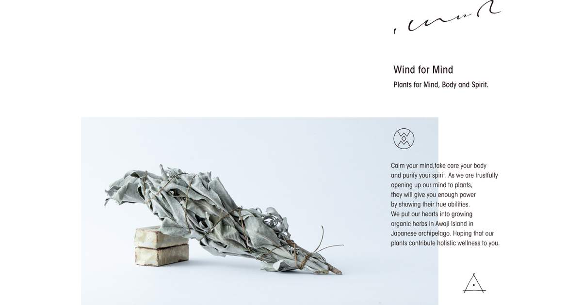 淡路島から心と体と魂のための植物をお届けします。私たちが心を開くとき、植物たちは必要な力を授けてくれるでしょう。私たちの育てた植物があなたの暮らしに役立つことを願っています。 Wind for Mind Inc. - Plants for Mind, ...