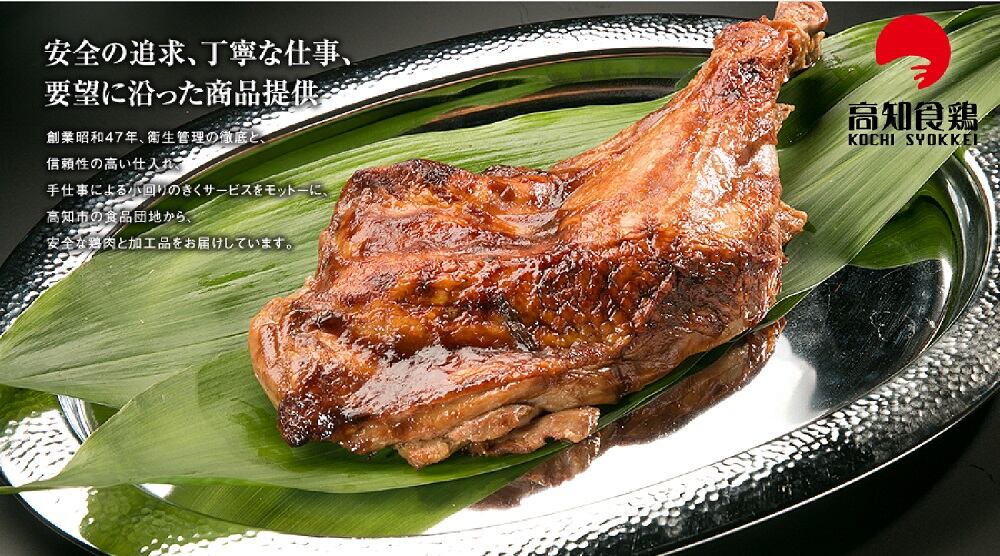 高鮮度で調理加工される鶏肉製品は、その食味・食感で、納品先様にも高い評価をいただいています。また独自に開発した焼き鶏ガラスープをブレンドした自慢のポン酢は、素材のうま味を引き立たせ、まろやかで飽きのこない味に仕上がっております。