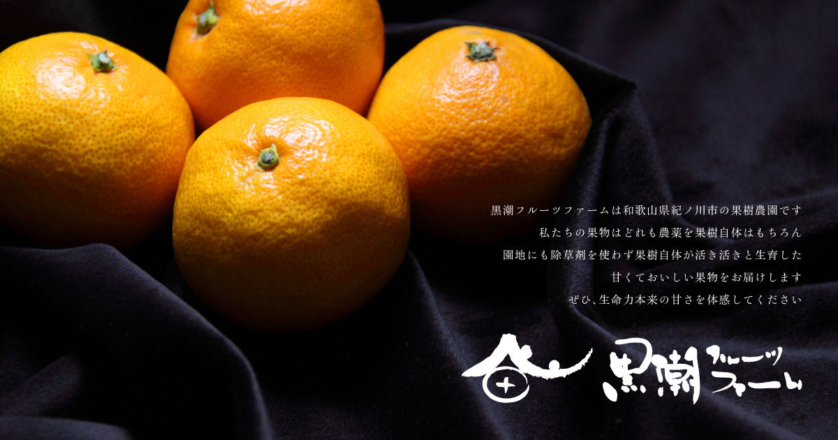 和歌山県紀の川市の柑橘果樹園、黒潮フルーツファームです。 私たちの特徴は、防腐剤・ワックス・除草剤を使用せず、果樹の体内健康とホルモンバランスを専門医のように診ながら、極限まで農薬や有機肥料を減らし、植物の体調に合わせた育て方をお約束しています。 また...