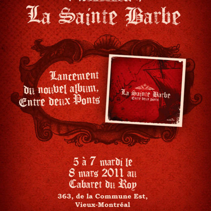 La Sainte BarbeEntre deux ponts, released 08 March 20111. Bergerette sans Roche-Saltarello2. L'Âne et le Loup3. Suite de Branles du Village4. Les Grenouilles5. Qui veut avoir liesse-Bransle d'Écosse6. Le Maistre de la Maison7. Pique la Baleine8. Suite de Bransles de Poitou9. La, la, la je ne l'ose-Bransle Charlotte10. Rond de Laudenac11. Buvons un coup12. Bourrée Bourbonnaise13. L'amuseur de filles14. Bransle de la Torche-Tourdion15. Margot labourez les vignes16. Mon amy s'en est allé17. Tedesca-Bransle doubleL'ensemble de musique ancienne "La Sainte Barbe" fait revivre les airs de cour et de village du temps de la Nouvelle-France.
