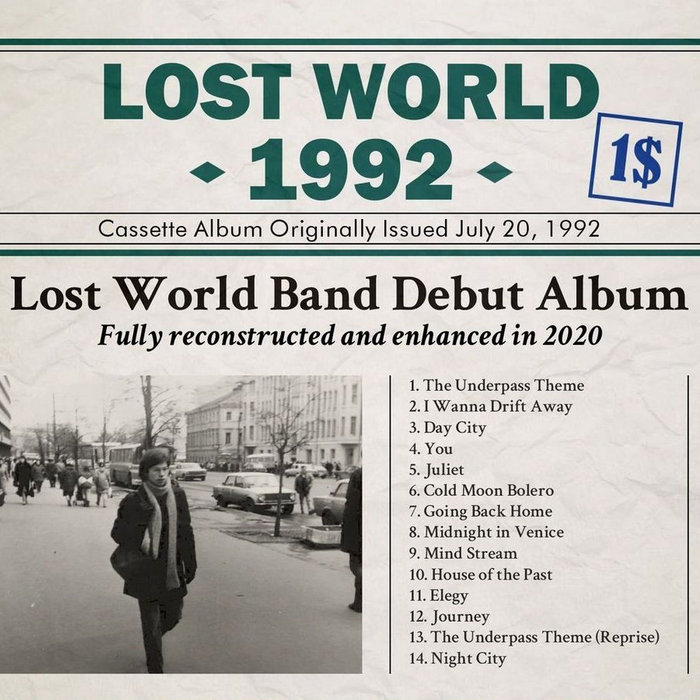 Lost World BandConceived by three friends, students of Moscow music college in 1991. Inspired by classical, pop, prog and modern music. Unusual lineup with the electric violin and flute sharing the lead.Lost World 1992, released 01 February 20211. The Underpass Theme2. I Wanna Drift Away3. Day City4. You5. Juliet6. Cold Moon Bolero7. Going Back Home8. Midnight in Venice9. Mind Stream10. House of the Past11. Elegy12. Journey13. The Underpass Theme (Reprise)14. Night CityThe ReconstructionThe idea to fully reconstruct the album came up in 2014. It became clear from the start that the original tape should be treated as a demo, and the album would have to be re-recorded from scratch, with the lyrics re-written and drums live. It seemed like a lot of work, and even though some guitar tracks were recorded at that time, the project was shelved in order to focus on Of Things and Beings.In May 2018, Andy undertook a titanic job of replaying all the instruments by ear, guided by the 1992 tape (excluding the Midnight in Venice which was scored in 1992). After that, Vasya was summoned to record the flute and vocal parts, which he did on June 28-30, 2018. Just two days before, the flute parts for Spheres Aligned were also recorded. The last phase: confined to his apartment by the pandemic in 2020, Andy searched the internet for a drummer. The young and versatile freelance drummer Matt Brown was found, and from his studio in London, he recorded the drums in June-July 2020. The album was mixed and mastered in November-December 2020 by Andy and Alex.