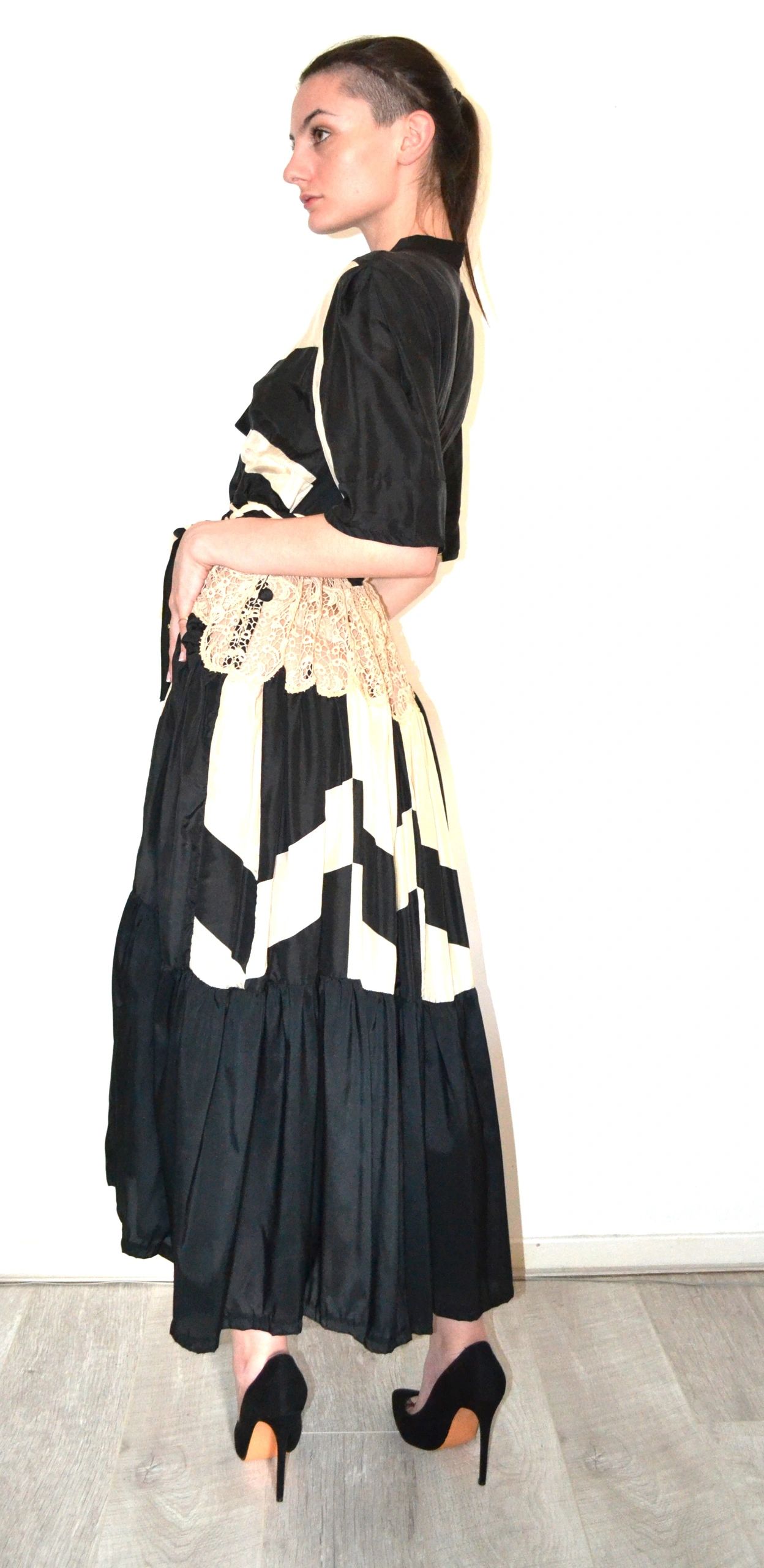 we create beautiful one of a kind sustainable handmade dresses with vintage lace and repurposed hand dyed silks and other upcycled materials.