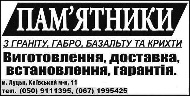 Contact page: https://lutskgranit.com.ua/ua/contacts