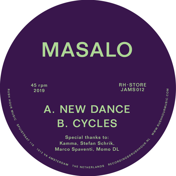 masaloNew Dance by Masalo, released 25 March 20191. New Dance2. CyclesUpcoming, very talented Amsterdam DJ /producer debuts on Rush Hour with a loud 12-inch two-tracker, New Dance. After his remix for Bassekou Kouyate on Joe Claussell's label and the strong "Testify" track co-produced with Jamie 3:26, he now goes solo with these two Italo infused dance floor igniters.