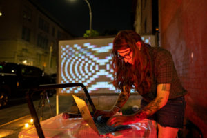 Messica Arson.Brooklyn, New York.Messica Arson is a Brooklyn-based artist who creates unique and electrifying computational noise music. Using live coding and live sampling, she incorporates sampled screams into her beats to add a raw and powerful element to her sound. Described by The Financial Times as "gnarly cut-up sounds," her music is not afraid to push the boundaries of traditional music.