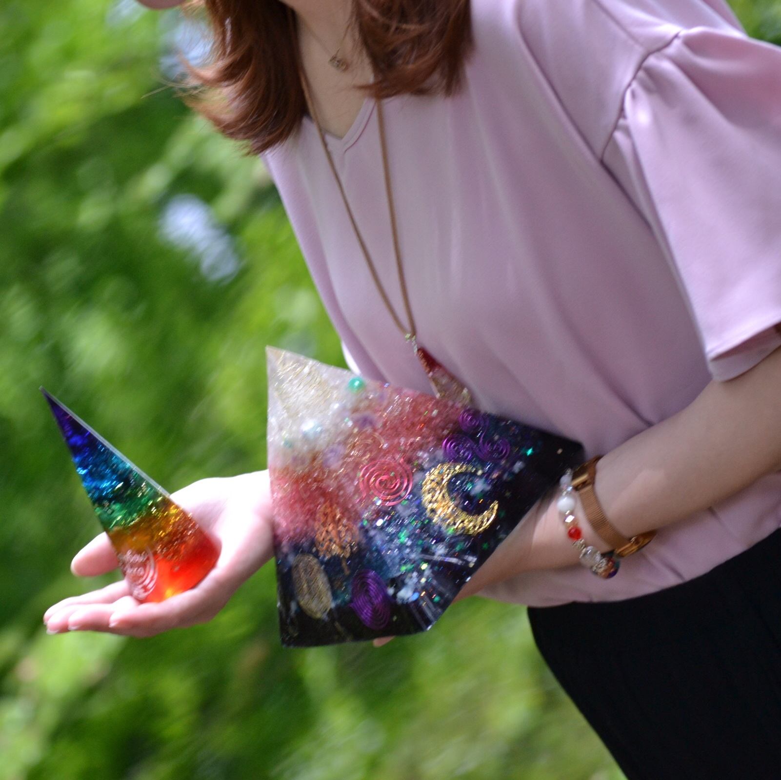 オルゴナイト販売★*゚オルゴナイトとは…ネガティブエネルギーをポジティブエネルギーに変換してくれるというスピリチュアルアイテム☆エネルギー変換装置とも言えます★お部屋の停滞したエネルギーを循環させたり、植物の発育をよくしたりしてくれます☆まわりをパワースポットにしてくれますよ♡パワーがあることから天然石の進化系とも言われています☆身に付けられる小さな物からお家の中を癒してくれる大きな物まで幅広く作成しております( ´͈ ᗨ `͈ )◞♡⃛ 心を込めて作成しています♡良かったら覗いてみて下さい♡直感で選ぶのがいいです♪ ぜひインスピレーションで選んでみてはいかがでしょうか?(*´꒳`*)全て一点物になります!大量生産は出来ません。オーダーも受け付けます(*˙˘˙*)❥❥※全て二液性レジンで作成しております