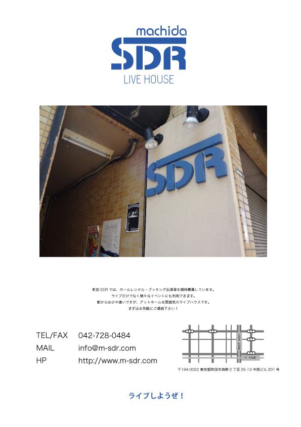 <町田東京レコーズ>町田SDRの公式オンラインショップです。※トップの”ライブしようぜ!”は”元気に生きていきましょう”という意味です。《お支払い方法》-----------------------------お支払い方法は下記のいずれかでお願い致します。1)クレジットカード決済2)各キャリア決済・ドコモ ケータイ払い・au かんたん決済/au WALLET・ソフトバンクまとめて支払い・ワイモバイルまとめて支払い3)Pay-easy※お振込先の口座情報や振込方法は、BASE(ベイス)より自動返信にて届く「注文控えメール」に記載しております-------------------------------《ご注文から発送まで》-----------------------------ご注文確定後、BASEより自動返信にて「注文控えメール」が届きます。また町田SDR公式オンラインショップの担当者が注文の確認後、改めて「ご注文確認メール」を差し上げます。(当方の作業の都合上、「ご注文確認メール」の送付が遅くなる場合もございますので、何卒ご了承くださいませ)ご注文後10日以内に発送いたします。-----------------------------《送料について》-----------------------------送料は、商品代金とは別に、1アイテムにつき送料が掛かります。送料は商品ごとに個別に設定されています。詳しくは各商品ページの説明文をご確認ください。また、ここでいう「送料」とは、実際の発送料だけでなく、発送までの梱包作業代、梱包資材などの諸費用を含みます-----------------------------《発送方法》-----------------------------※発送方法のご指定は原則受け付けておりません※着日時のご指定はお受けできません※ご不在連絡表が投函された後、郵便局の保管期間を過ぎたり、住所情報の誤りなど、お客様のご都合により当方へ荷物が返送された場合は、再発送の送料を頂戴します。(再発送の送料はご注文時の送料と同額となります)また、再送に伴うご連絡後、1週間以内にご返事/ご入金を頂けない場合は、ご注文は無効とさせていただきます(その後の返金/再送は承りかねます)※海外への発送は行なっておりません----------------------------------------《ご注文キャンセルについて》----------------------------------------お客様のご都合によるご注文のキャンセルはできません。お間違いないようにご注文ください。ショップ規定に基づき、こちらからご注文をキャンセルさせて頂くことがございますのでご了承ください-----------------------------《返品について》-----------------------------返品は原則として、受け付けておりません。ただし、不良品の場合は交換させていただきます。商品はお届けの際に必ずご確認下さい。また次の場合は返品、交換はお受けできません。●特別な理由がないまま商品到着後14日を過ぎた場合。●お客様のもとで傷または汚損が生じた場合。-----------------------------《領収書の発行について》-----------------------------領収書の発行は対応しかねます。何卒ご了承ください-----------------------------《その他の注意事項》-----------------------------メール受信についてドメイン指定をしている場合はthebase.inおよびinfo@m-sdr.comからのメールを受信できるよう設定をお願いしますお客様の都合により商品がお届けできず商品が当方へ返送された場合はこちらから改めてご連絡を致します。返送後の当方のご連絡より1週間以上ご返事がない場合はご注文は無効とさせていただきます(その後の返金/再送は承りかねます)のでご注意ください海外への発送は行なっておりませんショップ規定に反する行為をしたお客様はその後のご注文をお受けできなくなる可能性がございます町田SDR HPhttp://m-sdr.com/お問合わせメールmail:info@m-sdr.com