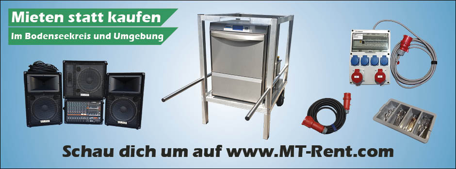 Veranstaltungsequipment mieten. Im Bodenseekreis und Umgebung. Musikanlagen, Beleuchtung, Gastronomie-Equipment und vieles mehr.