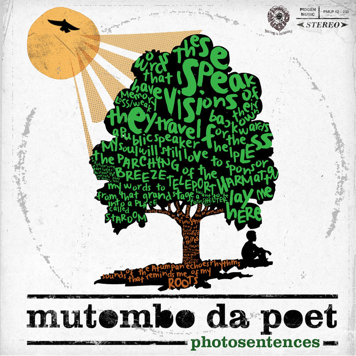 PHOTOSENTENCES by Mutombo Da Poet, released 30 April 20121. Talking Drum2. Changes3. Unborn Talks4. Sweet Memories5. Ten Regions6. My Thoughts7. Paddies8. Parade9. Internal Migration10. Natives To Slaves11. Kicking Buckets12. Vibes13. X RayPhotosentences (play on Photosynthesis) is Mutombo Da Poet's 1st spoken word album. It was just right for him to release this record, after establishing himself as a prolific performer on the Ghanaian spoken word and poetry scene. Photosentences has 13 poems and the artist paints clear and distinct pictures about his childhood, politics, love and relationships, his native country Ghana, and death. From a unique perspective that simply draws you into his world.