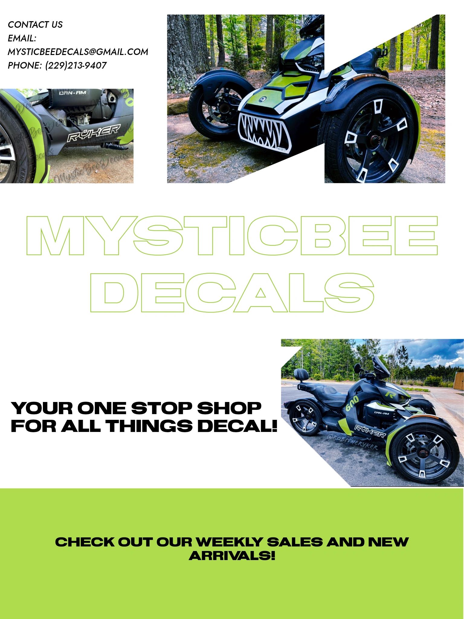 Auto/Ryker Decals/Spyder/Boat/Motorcycle Decal service. We've been proudly in the industry since 2018 bringing all your decal needs to you.