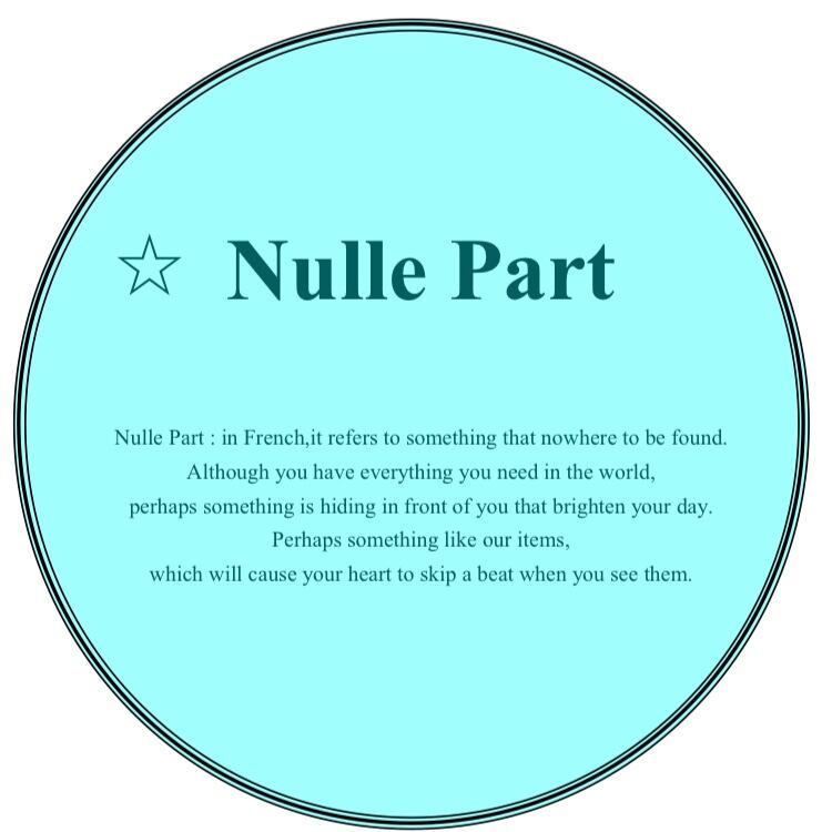 NullePart(ニルパール)はフランス語で「どこにも無いもの」という意味です。たくさんのモノに溢れた今の時代に、あなたがまだ見たことの無い新しい商品を提案していく事が、NullePartのブランドコンセプトになります。
