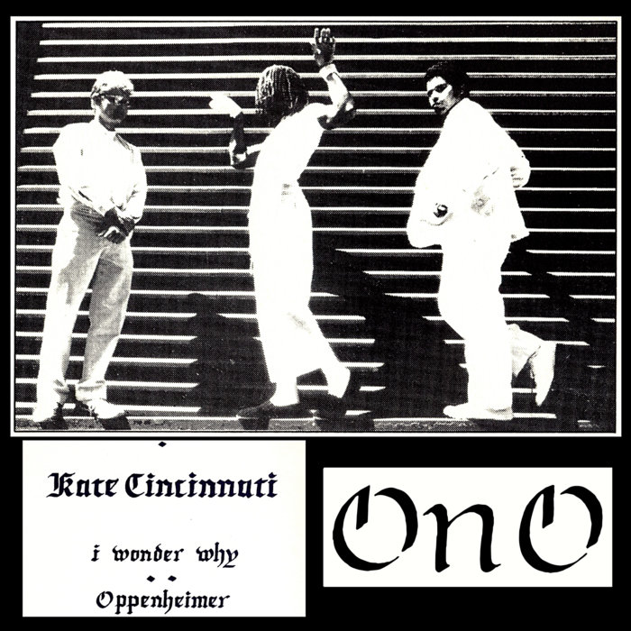 ONO“The ONO Statement of Purpose: Experimental, Noise, and Industrial Poetry Performance Band Exploring Gospel's Darkest Conflicts, Tragedies and Premises.”Kate Cincinnati, released 18 November 20221. Kate Cincinatti2. I Wonder Why // Oppenheimer3. I Wonder Why (Single Edit)For forty-two years and counting, the long-running experimental Chicago group ONO has been committed to—as their mission statement says—exploring gospel's darkest conflicts, tragedies and premises as an experimental, noise, and industrial poetry performance band, charting a defiant course through a sea of seemingly disparate influences. One of few Black bands taking part in the ‘80s industrial and experimental underground, ONO’s first album Kate Cincinnati is a crucial document, showcasing them as a trio composed of bandleader P. Michael Grego, multi-instrumentalist Ric Graham, and enigmatic frontperson travis. Kate Cincinnati was originally self-released in 1982 in an edition of 300 tapes alongside an accompanying libretto/zine. The trio traverse a variety of sonic environments—travis' singing, bass, and lap steel move effortlessly between gospel, blues, opera and noise suggestions; Graham plays a maelstrom of music on horn and guitar; Grego quietly orchestrates arrangements while adding keyboards, electronics, and percussion.Those who have seen ONO's recent concerts know their performances emphasize travis' striking stage presence and Grego's penchant for deconstructing soul and funk. travis may undergo costume changes, beat a trash can lid, shake chains, dance with audience members, and set off electronic rhythms, sounds, and noises; Grego conjures rich, throbbing basslines, plays keys, and layers samples on top of each other - together they foreshadow full-frontal, all-ONO exploratory overlays. The title track on Kate Cincinnati is an early example of ONO's evocative performance style, with choral chanting, drum beats, speak-singing, and ambient saxophones—almost like blues meets New Music America. "I Wonder Why" and "Oppenheimer" merge gospel, punk and blues elements, and a characteristic, anthemic seething, combining socio-political incision, history, and religion: "10.5 million non-whites!" "Give me Jezebel!"If this is your first time with ONO, hop on board and see why Steve Albini, Moor Mother, Dan Deacon, Black Midi, Algiers and countless other musicians and music lovers love them so. If you're already a fan, don't walk—run.