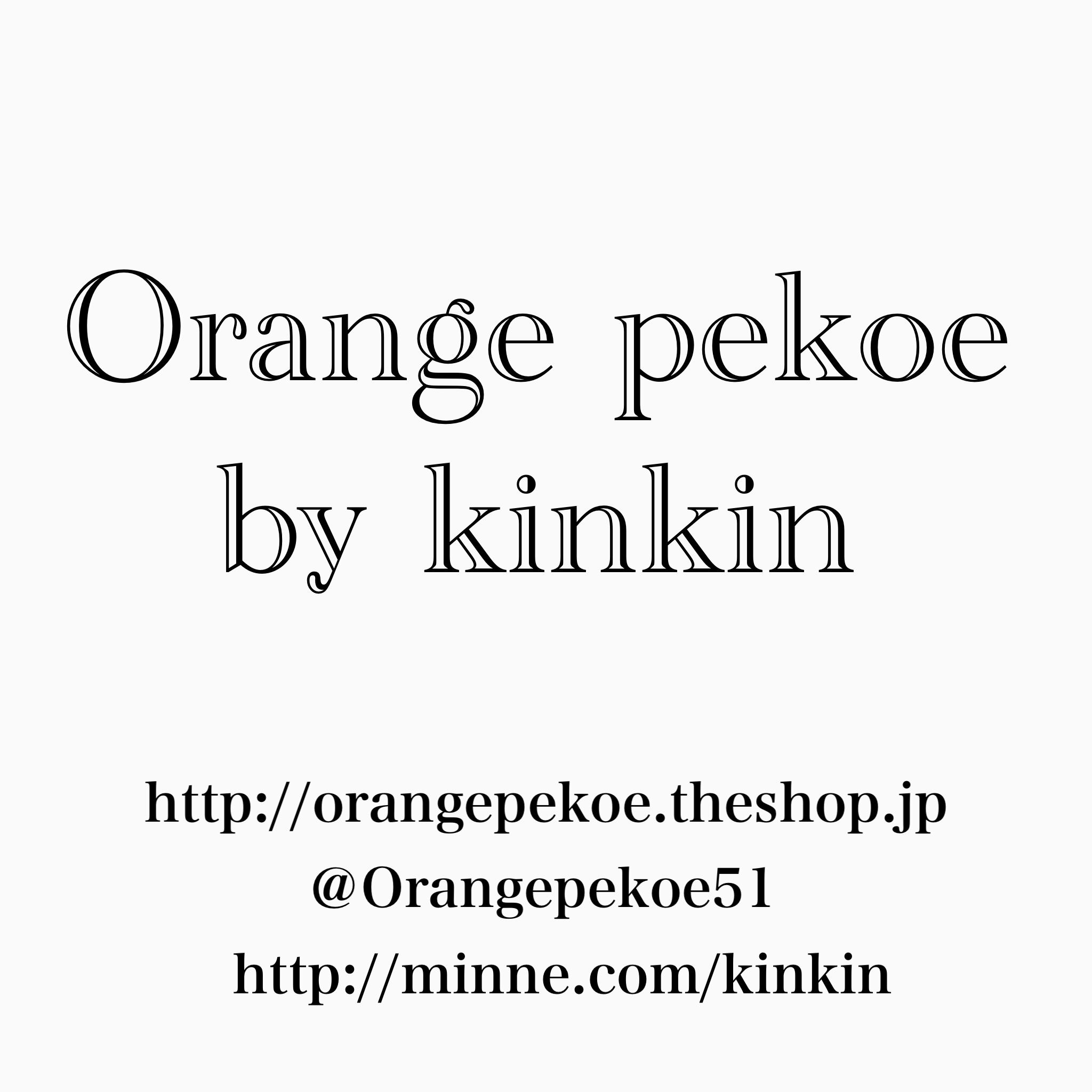 たくさんの作家さんがいる中から私の作品を見て頂きありがとうございますちっちゃな雑貨屋さん『Orange pekoe by kinkin』可愛いと感じた物をいろいろな素材などを使い製作しています【注意事項】 ハンドメイド作品の為、指紋やほこり、色ムラ、気泡などがある場合がございますのでご了承ください 小さなお子様がいる方・ペットを飼われている方は誤飲などを気をつけて下さい。 事故が起きましても責任を負いかねますのでくれぐれもご注意ください。 市販品、既製品ほどの強度がなく水分や衝撃など使用により破損する場合が御座います。【お知らせ★イベント】デザインフェスタvol.45 東京ビックサイト東4.5.6.7.8ホール 2017.5.27(土)-28(日)ニャンフェス5 都立産業貿易センター台東館 2017.4.9(日)F-22アーティズムマーケット2017春 都立産業貿易センター台東館 2017.2.26(日)B-44デザインフェスタvol.44 2016.11.26(土)-27(日)真夏のデザインフェスタ+GAKUTEN 2016.8.27(土)-28(日)G-409ハンドメイドインジャパンフェス2016 2016.7.23(土)-24(日)B-40デザインフェスタvol.43 2016.5.14(土)→5.15(日)G-392minneのハンドメイドマーケット ホビーショー同時開催 2016.4.28(木)→4.30(土)ハンズ池袋 ときめきコロニー 2016.2.15(月)→3.6(日)デザインフェスタvol.42 2015.11.21(土)→11.22(日)K-312ハンドメイドインジャパン2015 2015.7.25(土)→26(日) G-311ハンズギャラリーマーケット 東急ハンズ 銀座店 2015.6.1(月)→6.27(土)C-11ハンズギャラリーマーケット 東急ハンズ 渋谷店 2015.5.25(月)→6.20(土)うさフェスSpring桜祭 2015年3月28日(土)〜29日(日)池袋ハンズ1F 「ハリネズミとうさぎの森」 2015年2月26日(木)〜3月14日(土)デザインフェスタVol.40 2014年11月8日(土) デザインフェスタVol.39 2014年5月17日(土)・18日(日) 中野セントラルパークMOTTAINAIてづくり市 2013年11月17日(日) 池袋MOTTAINAIてづくり市 2013年12月21日(土)