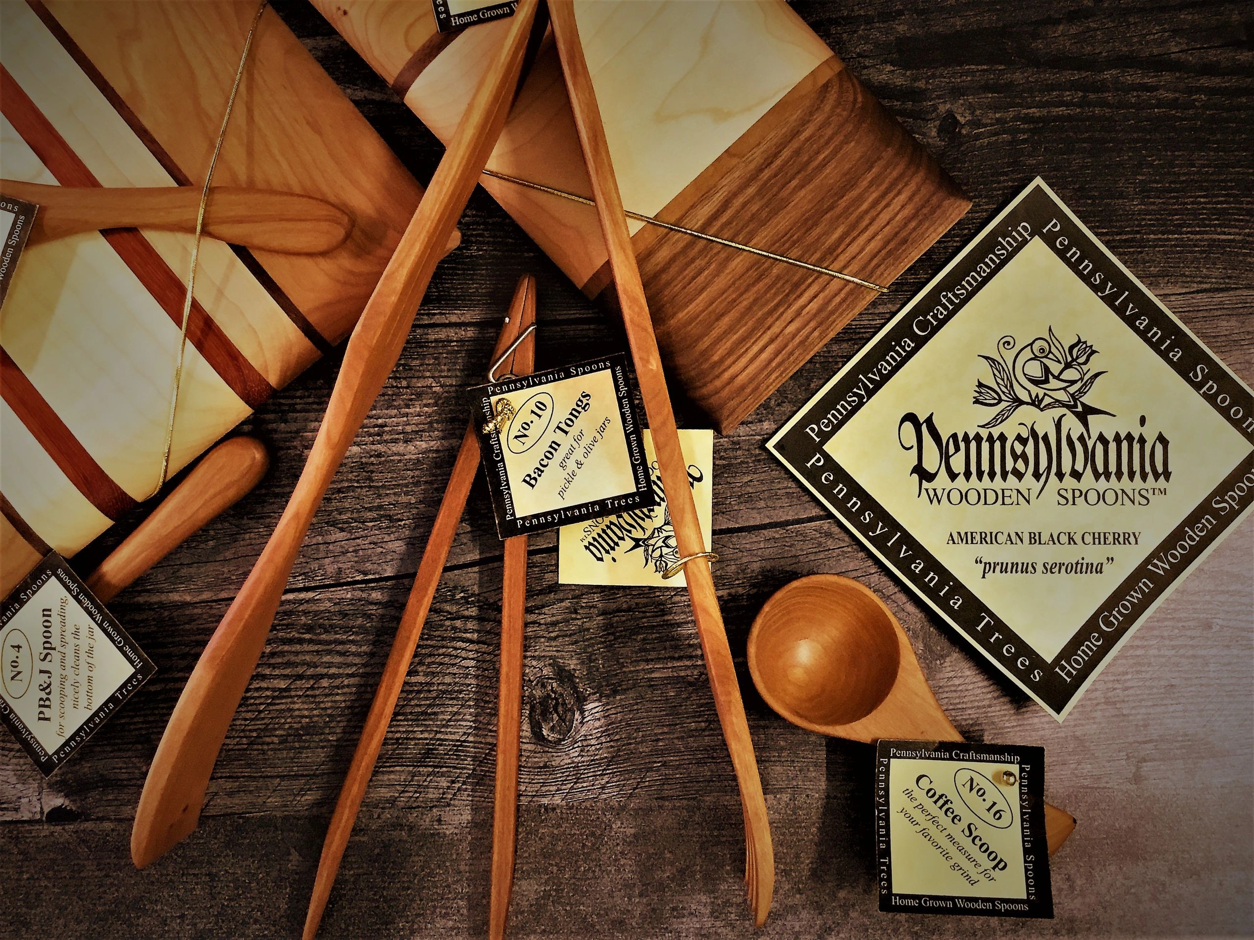 Wholesale wooden spoons handmade in Pennsylvania... Cherry wooden spoons, utensils and boards. Available too brick and mortar's and online retail stores only.