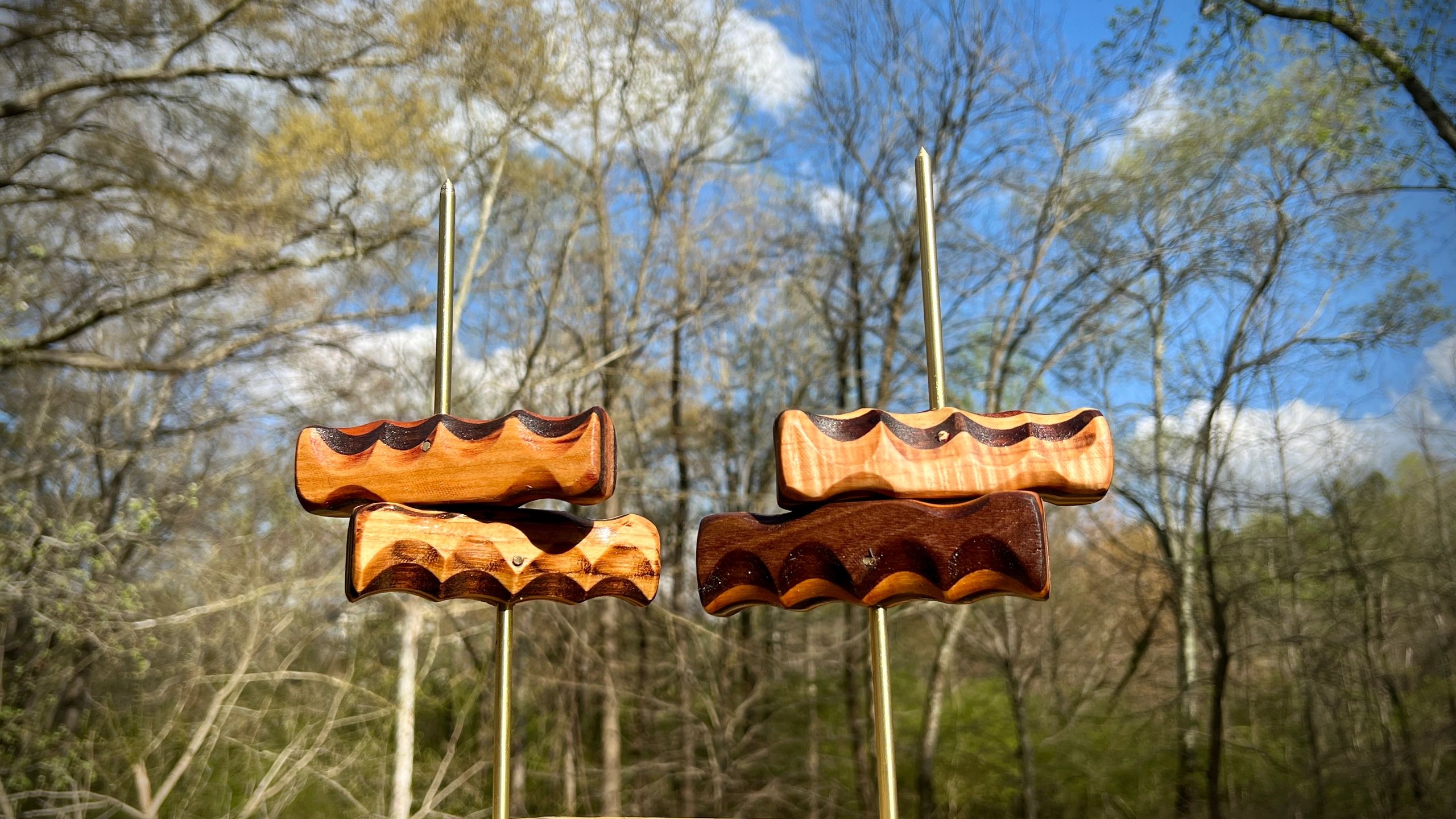The most comfortable hand crafted pyro pokes made from layered solid wood with brass rod used for preparing firework cakes for electronic match ignition.