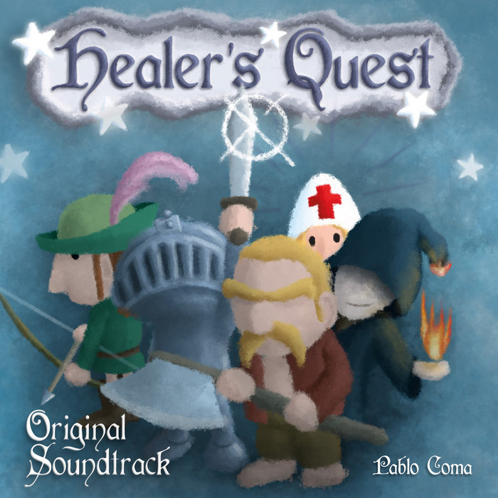 Pablo ComaHealer's Quest - Original Soundtrack, released 18 April 20181. Healer's Quest2. Create Your Healer3. Heroic Heroes4. Man With A Cloak5. World Map6. Random Encounter7. Overworld Event8. Discussion Theme9. Goblins Theme10. Dungeon Crawling11. Boss Theme12. Don Chitor13. King Simon14. Misbelievers!15. Forest Theme16. Casual Encounter17. MAGMA18. Spectral Cemetery19. Dark Forest20. Ancestral Castle21. Sunset22. Final Encounter23. Healer's Lullaby24. Lighthearted Garden25. Victory Fanfare