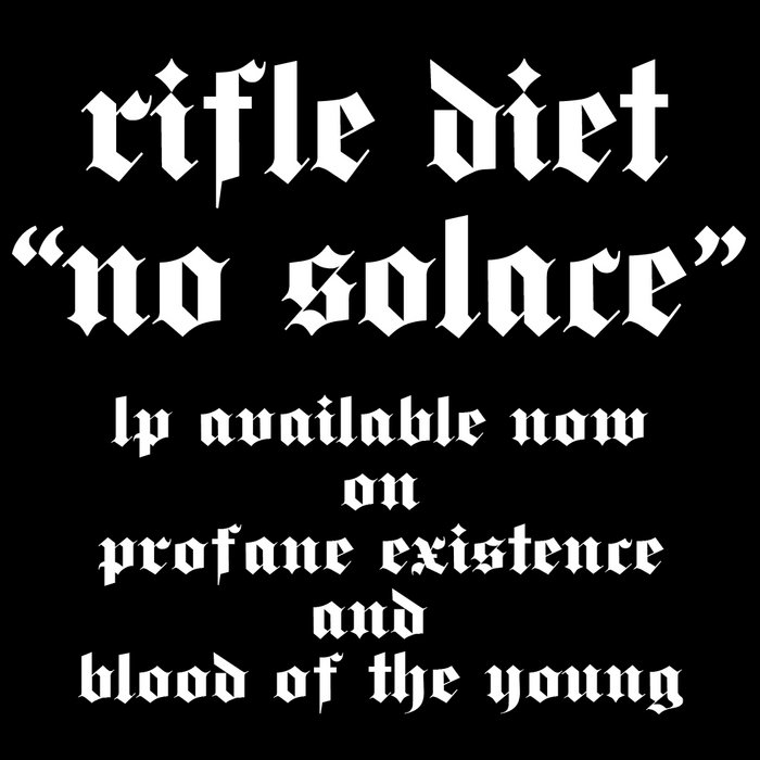 Rifle DietFemale-fronted heavy crustcore from Minneapolis on Profame Existence/Blood of the Young. . Ex-members of Garmonbozia and In DefenceNo Solace, released 17 August 20141. Battles Not Chosen2. Evil Men's Deeds3. Just A Phase4. Hung Between5. Nails6. Chain of Command (His Hero Is Gone)7. Our Choice12" Vinyl Available:http://profaneexistence.storenvy.com/collections/901536-profane-lps/products/11634122-rifle-diet-no-solacehttp://bloodoftheyoung.storenvy.com/products/11745729-no-solace-lp-rifle-diet
