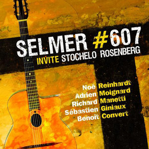 Selmer #607.Paris, France.Noé Reinhardt, Sébastien Giniaux, Adrien Moignard, Rocky Gresset, Richard Manetti et Benoît Convert se sont réunis autour d'une guitare Selmer de 1946, numéro de série 607.100 ans après la naissance de Django Reinhardt, qui jouait sur la Selmer #503, cette nouvelle génération du Jazz Manouche est aujourd'hui la pointe de la guitare Jazz.