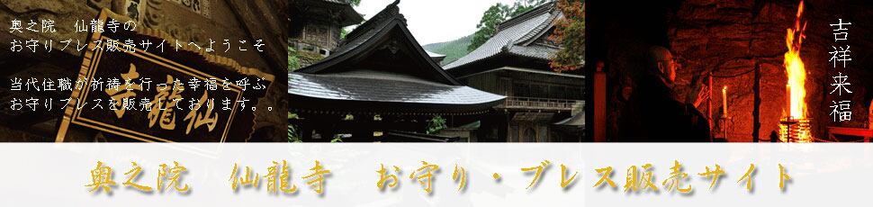 愛媛県四国中央市新宮にある三角寺 奥の院 仙龍寺の販売サイトになります。四国霊場開創1200年を記念したお守り念珠ブレスやインターネット限定のお守りブレスの販売を行っております。護摩祈祷済みのブレスですのであなたに代わってお守ります。自分の身の安全を守るブレスですが、縁結び、家内安全、交通安全など全てにご利益があります。遠方から来られて再度ブレスを購入したい方や遠方のためなかなか現地まで足を運べない方の為にインターネットから購入できるようにさせていただきました。奥之院 仙龍寺公式サイトhttp://www.okunoin-senryuji.com/