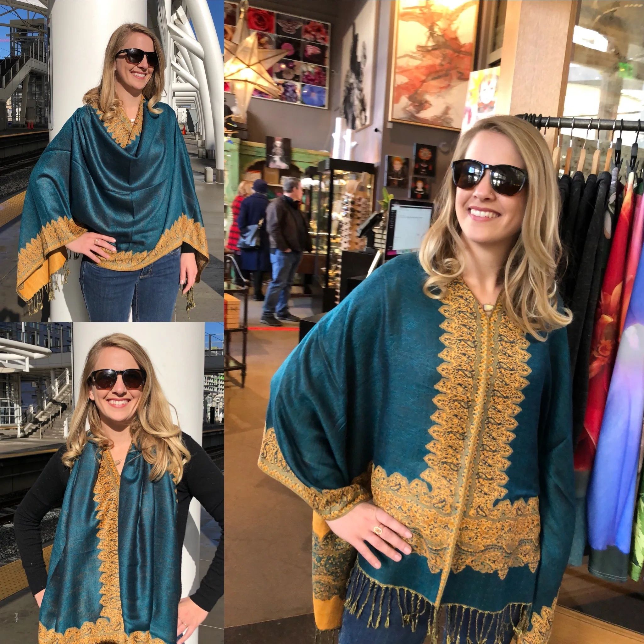 At Shawls by Veronika you will find my unique interpretation of the Woman's Shawl. I created a functional design made out of beautiful shawls to wear easily. Shawl tops just slip it over your head and GO! No pinning - No wrapping - No tying. Shop the most fashionable One Size garment every woman should add to their wardrobe. woman's shawl casual wear one size