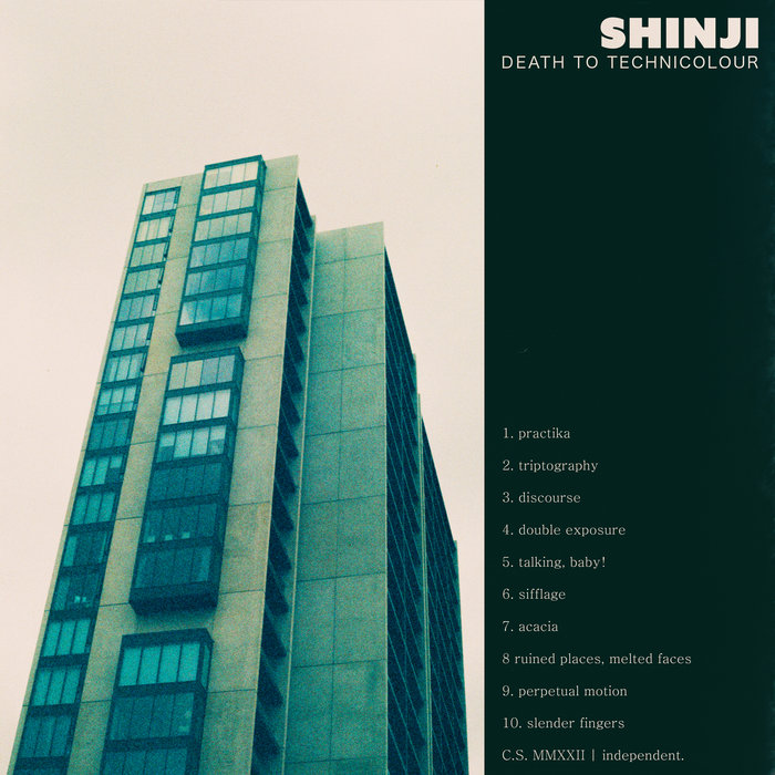ShinjiNo boundaries, just beats.Death to Technicolour, released 15 April 20221. Praktica2. Triptography3. Discourse4. Double Exposure5. Talking, Baby!6. Sifflage7. Acacia8. Ruined Places, Melted Faces9. Perpetual Motion10. Slender FingersThis collection is made up from offcuts from Shinji and In Colour, plus some new tracks written this year! The old stuff has been reworked so they sound better and heavier than ever.xoxox shinji