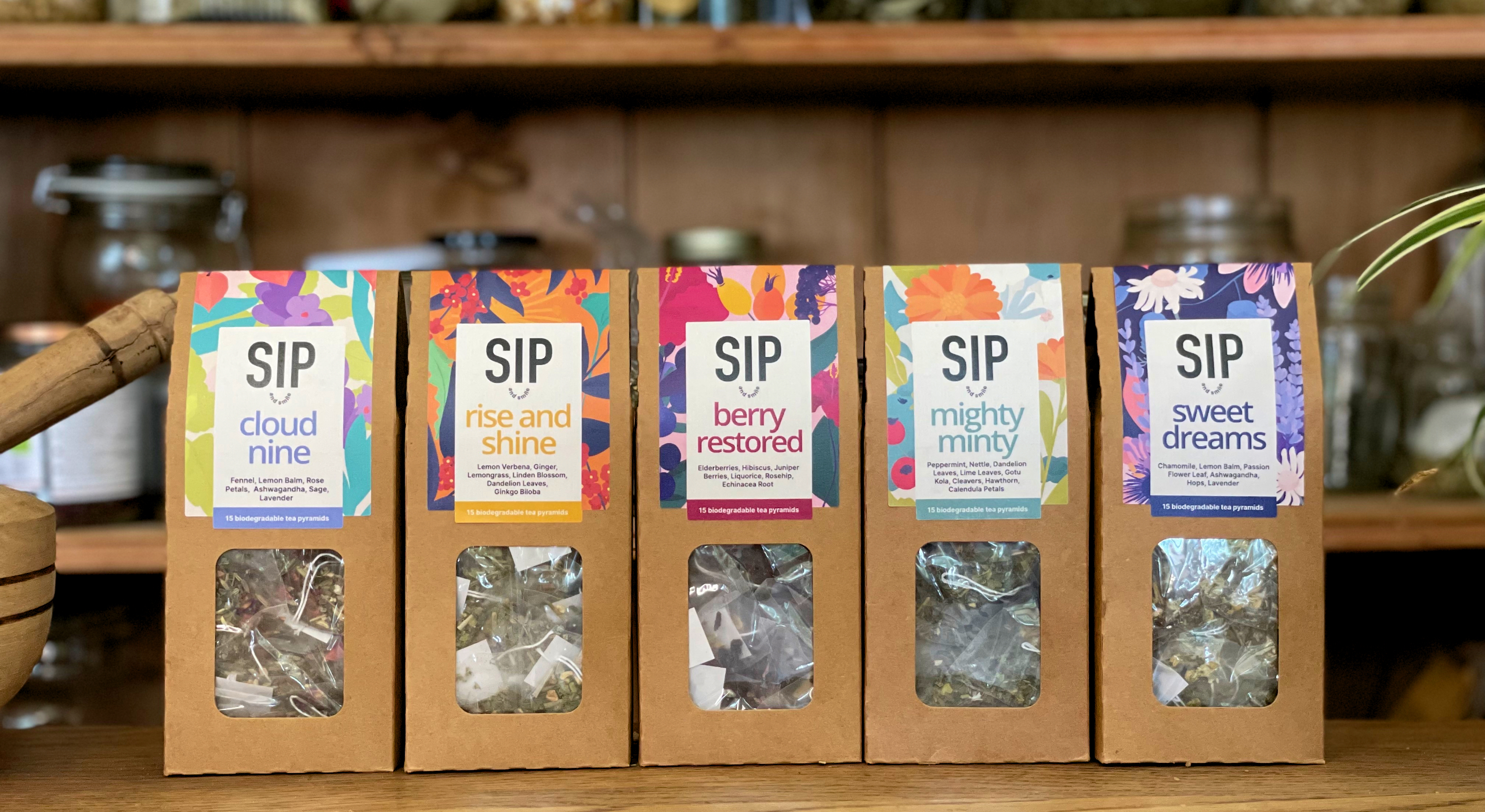 Plastic free herbal pyramid tea bags filled with lots of goodness and deliciousness. Small UK business based in Wiltshire