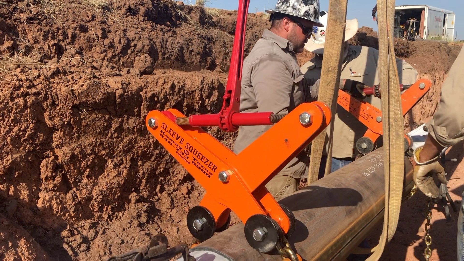 Sleeve Squeezer American Made & Patented is engineered to install and align pipe sleeving materials for oil & gas pipeline repair