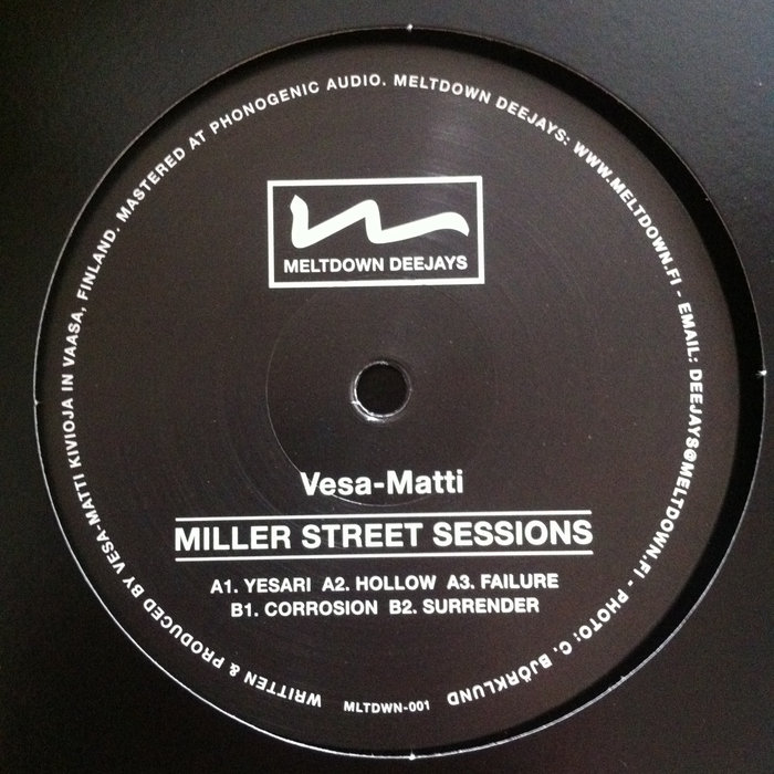 Snakesynk RecordsSound aficionadoVesa-Matti - Miller Street Sessions (MLTDWN-001) by Vesa-Matti, released 15 March 20161. Vesa-Matti - Yesari2. Vesa-Matti - Hollow3. Vesa-Matti - Failure4. Vesa-Matti - Corrosion5. Vesa-Matti - Surrender"a fascinating fusion of Nordic-flavoured dub esthetics and twisted sound manipulations."www.meltdown.fi