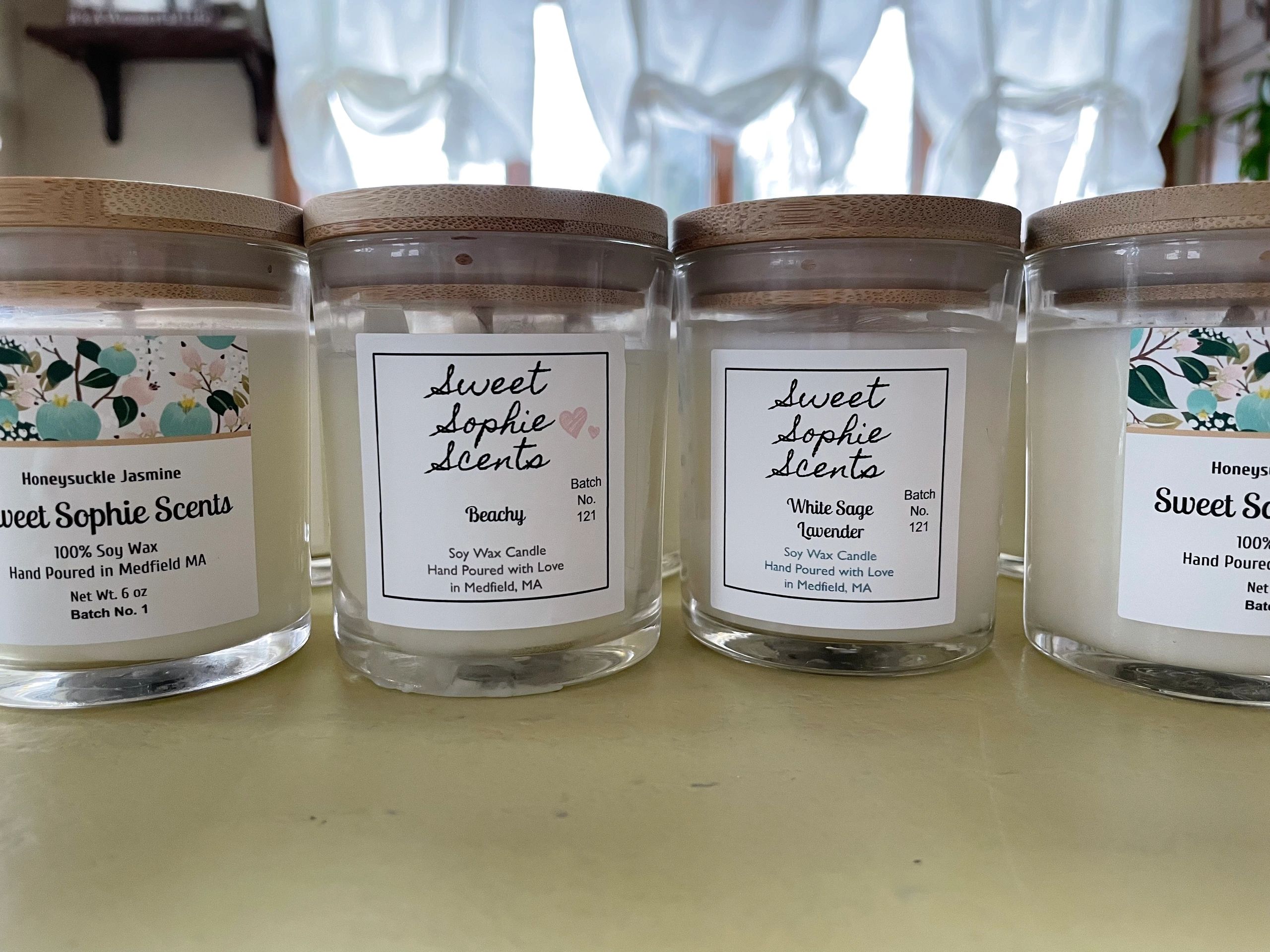 Homemade candles make great gift! Hand poured with 100% soy wax. A portion of each candle sold goes to charity.