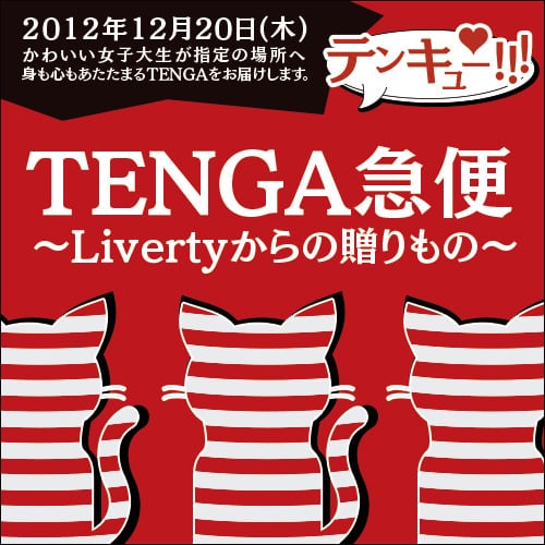 ◆ TENGA急便とは2012年12月20日(木)、かわいい女子大生が指定の場所へ身も心もあたたまるTENGAをお届けするサービスです。◆ 商品詳細TENGA x HOLE WARMER(限定10個)※1年間頑張った自分へのご褒美、日頃お世話になっている友人へのプレゼント、なかなか会えない遠距離恋愛の恋人に、東京で一生懸命働く息子(のムスコ)へ性の仕送りとして、様々な用途でご利用いただけます。◆ 購入後の流れ購入後担当者がメールにて連絡をしますので、指定の配送先住所と希望の配送時間(14:00-22:00の間)をお送りください。◆ 注意事項・配送区域は【東京都渋谷区・港区限定】となっております。・配送先は自宅、勤務先、飲食店など、様々な場所に対応しております。・同時刻に注文が集中した場合、希望の配送時間にお応えできない可能性があります(可能な限り調整いたします)。・サービスの性質上、屈強なボディーガードが同行します。ご理解のほど、よろしくお願いいたします。◆ TENGA急便運営先liverty | Live in liberty. 自由に生きろ http://liverty.jp/