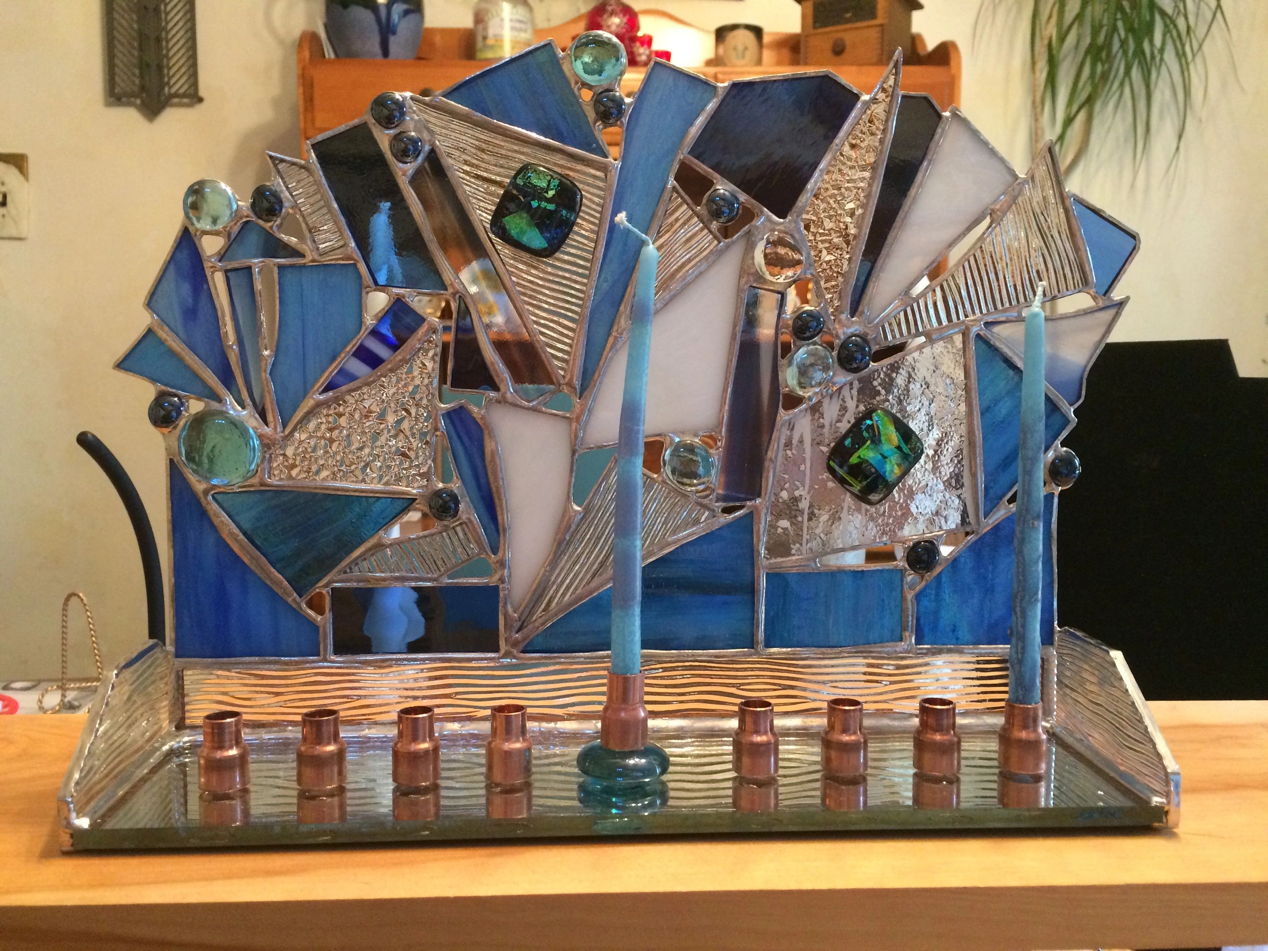 Stained Glass/Fused Glass Artisan designs Judaica & Metaphysical pieces from Menorahs, Mezuzahs, & Hamsas to Lotus Flowers, Chakras, etc. (jewelry/home decor)