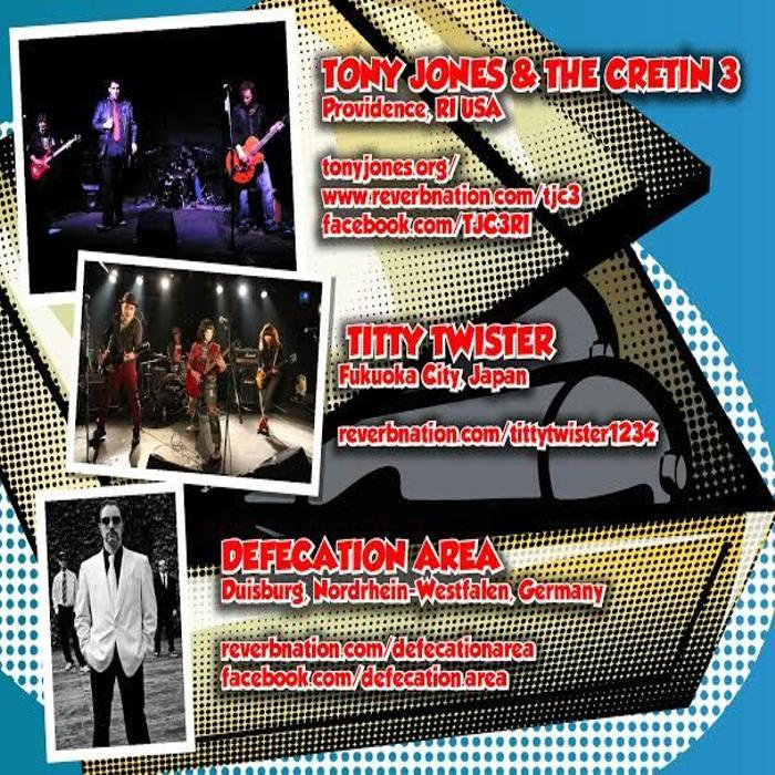 Tony Jones & The Cretin 3-Formed in the early fall of 2008, and based out of Providence, RI. Tony Jones & The Cretin 3 is the epitome of rock and roll-The Original songs have a vintage Punk/Garage/Psychobilly feel that is sure to be reminiscent of the original days of punk in NYC.-Tony Jones & The Cretin 3 have created a sound that is unparalleled and often looked upon in awe...Drop The Bomb by Tony Jones & The Cretin 3 / Defecation Area / Titty Twister, released 08 August 20151. Dead-End Drive-In (Tony Jones & The Cretin 3)2. Livin' in a Dream (Defecation Area)3. Amega furu maeni (Titty Twister)Tony Jones & The Cretin 3 (USA) Defecation Area (Germany) Titty Twister (Japan)