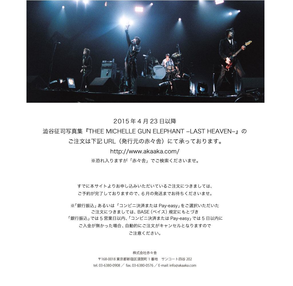 澁谷征司撮影ミッシェル・ガン・エレファントラストツアー写真集販売特設ページ