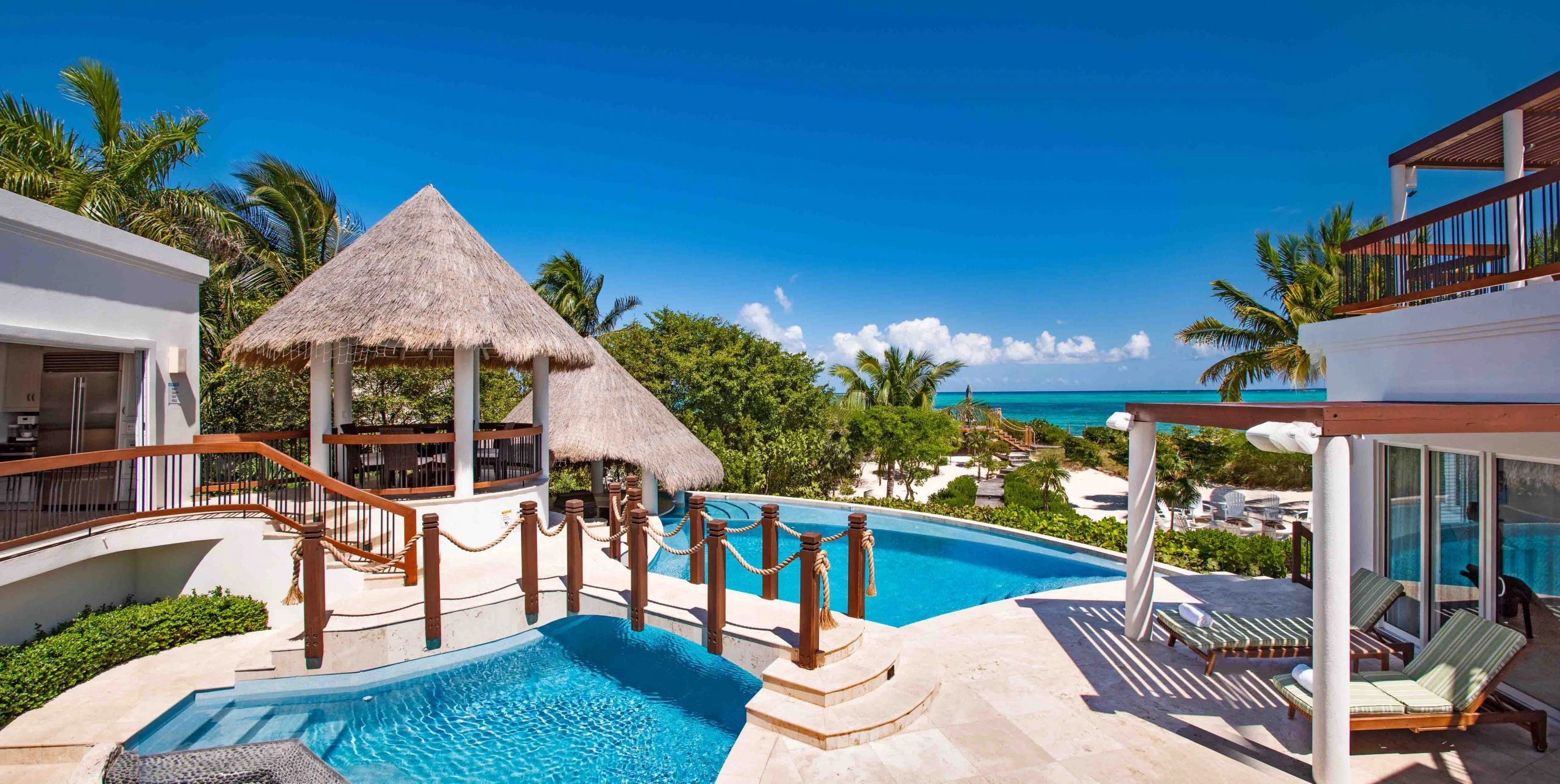 Turtle Breeze, a turk & caicos vacation villa on Grace Bay, with three stunning pools and separate structure bedroom suites, is a private resort experience.