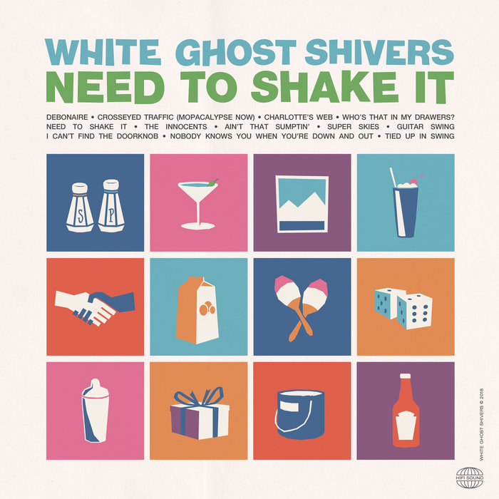 White Ghost ShiversNeed To Shake It, released 18 May 20181. Debonaire2. Crosseyed Traffic (Mopacalypse Now)3. Charlotte's Web4. Who's That In My Drawers5. Need To Shake It6. The Innocents7. Ain't That Sumptin'8. Super Skies9. Guitar Swing10. I Can't Find The Doorknob11. Nobody Knows You When You're Down And Out12. Tied Up In SwingEngineered and Mixed by Brad Bell at Public Hi-FiMastered by Jeff Lipton at Peerless MasteringProduced by White Ghost ShiversExecutive Produced by Gary B. WeissAlbum Artwork by Lyon Graultywww.whiteghostshivers.combooking@whiteghostshivers.com