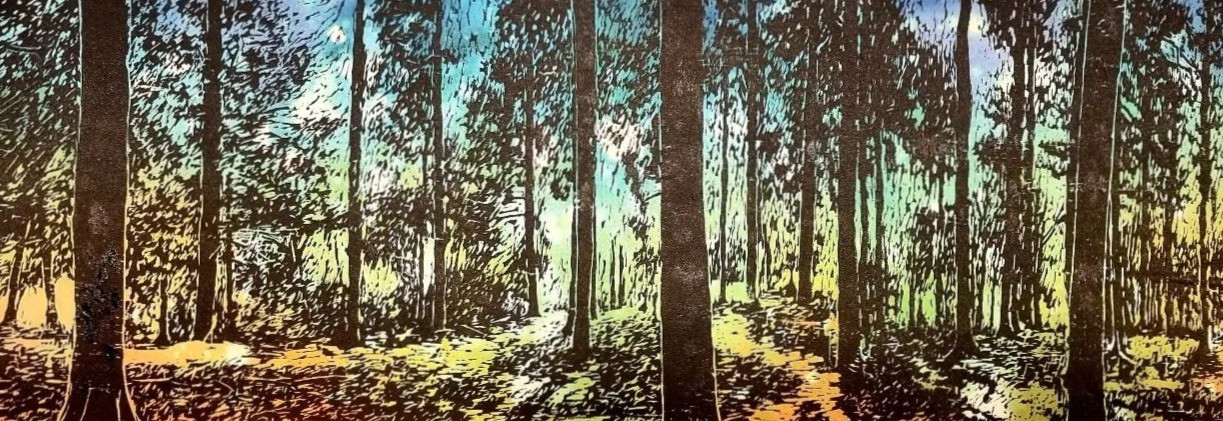 As the creator of Arboretum Print Co I create hand-carved and hand-printed linocuts, inspired by the natural beauty of trees and woodland landscapes. I try to capture and unique feeling of light and space by experimenting with detailed, expressive mark-making and hand-tinted, colourful backgrounds.