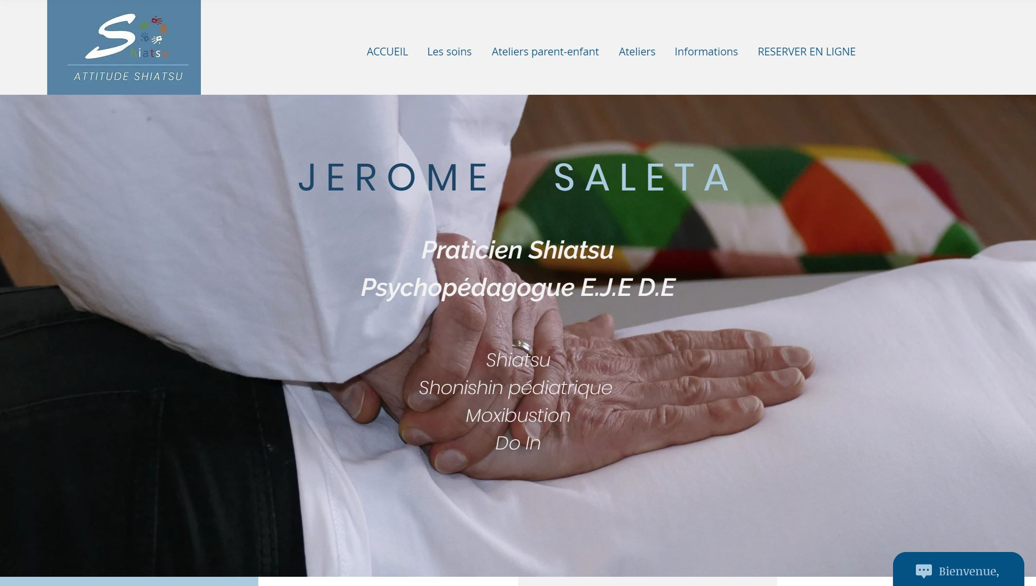 Jérome Saleta, Praticien Shiatsu (FFST) et Shonishin pédiatrique (ACEKI e.V). Le shiatsu est un technique de soin manuelle indiquée pour le stress, trouble du sommeil, douleurs, burn-out, fatigue,....